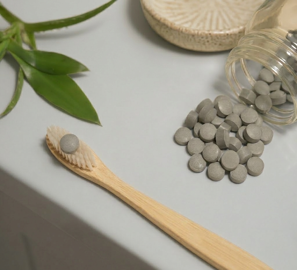 Our tablets skip the synthetic detergents (like SLS and cocamidopropyl betaine) that create big, dramatic foam. Instead, our tablets hydrate into a natural, low-foam paste made from botanicals and minerals that actually support oral health.